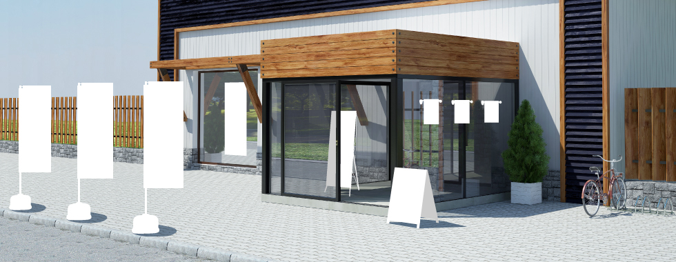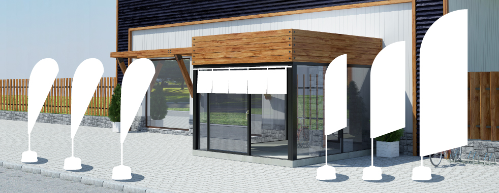 定番の四角い形ではなく斬新なフォルムで目を引きたい方に多く、現在人気なのがPバナーやスウィングバナーです。Pバナーは風によるはためきを抑えた構造で視認性や注目度を高めています。洋風な業種やスポーティーな用途に多く使われています。スウィングバナー(R)は登録商品です。耐久力が劣る類似品にはご注意ください。
