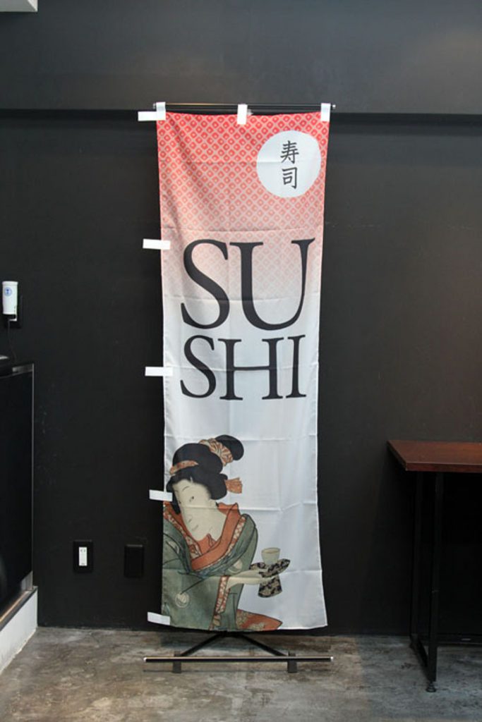 こちらは赤い地ののぼり旗です。オーソドックスなデザインですが、