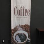 大きな写真が特徴の「冷た〜いアイスコーヒー。」のぼり旗です。