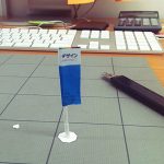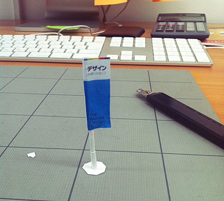 デザインのぼり旗が立っていて、