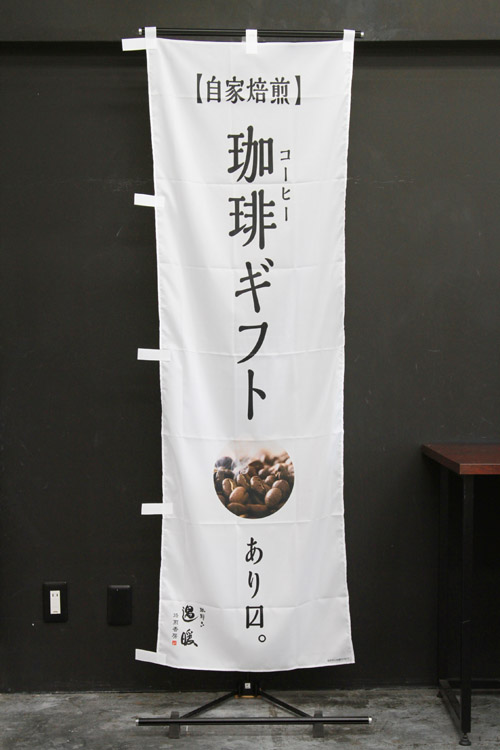 シンプルに文字とコーヒー豆の写真を組み合わせた「自家焙煎珈琲豆」のぼり旗です。 どこか懐かしい少し控えめなデザインです。 龍坊さまより文字変更・名入れのご注文をいただきました。 ↑こちらはレギュラーサイズの商品です。 商品ページはこちら▶ 自家焙煎珈琲豆販売中(白)(PAC233)