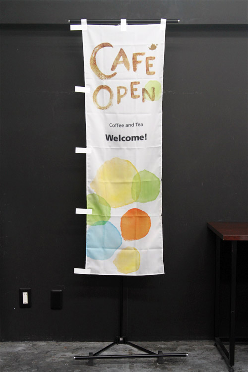 優しい雑貨店のような雰囲気をイメージした「Cafe Open」のぼり旗です。