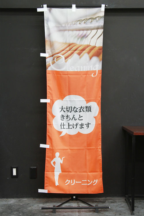 「クリーニング 春の衣替え」のぼり旗です。衣替え時期はクリーニングに最適です。
