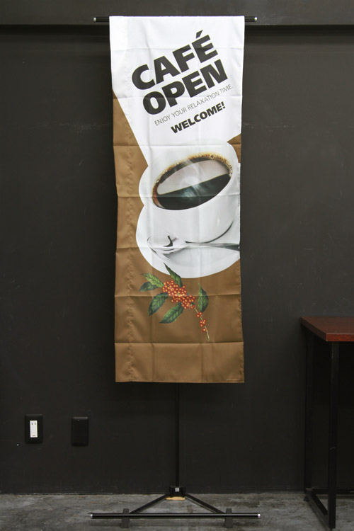 この「COFFEE TO GO!斜め文字」のぼり旗はお持ち帰りのお客さまに最適な一枚です。オフィス街、公園の近く、席数が少ないお店などにオススメです。コーヒーカップ、持ち帰り容器の写真、ゴシック体の文字を斜めに配置した動きのあるデザインです。 ↑こちらはスリムショートサイズ、袋縫い加工の商品です。 商品ページはこちら▶ COFFEE TO GO!斜め文字(茶)(PAC755)