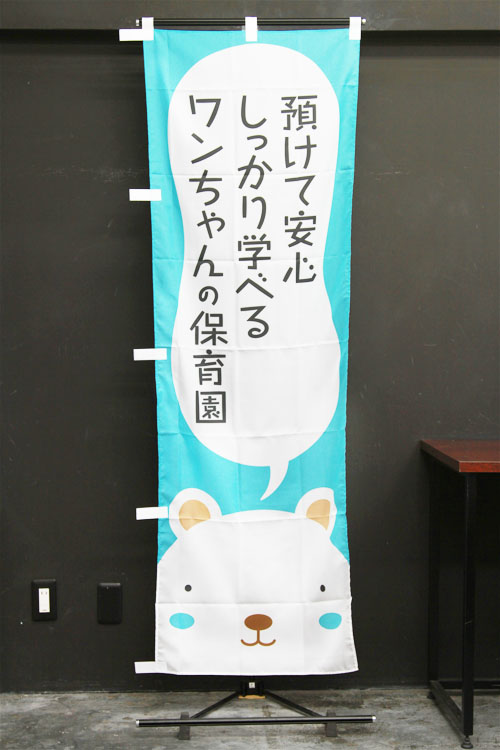 動物キャラクターのぼり旗「アザラシさん(海豹)」です! 吹き出しはフリースペースになっています。 皆さまのアイデアでご自由にお使いいただけます。 ↑こちらはレギュラーサイズの商品です。 商品ページはこちら▶ アザラシさん(ANM020)