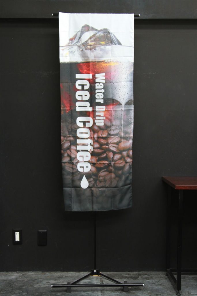 どこか懐かしい版画イラストの入ったのぼり旗です。