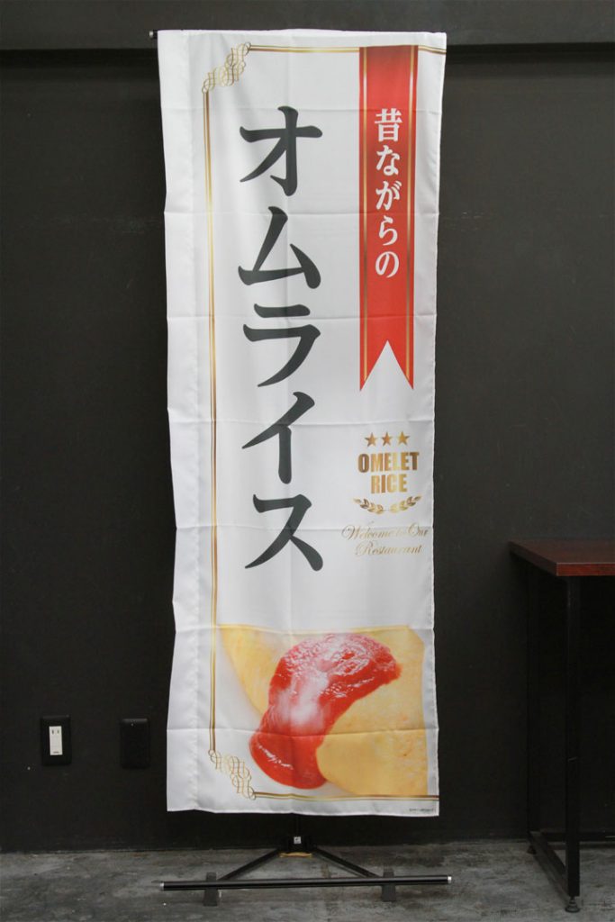 洋食シリーズ「レストランランチ営業中」のぼり旗です。 高級感がありつつ、文字の視認性を重視したのぼり旗です。光沢のある赤いリボンと ゴールドをイメージした飾りや英字、料理のイメージ写真が街ゆく人の目をひきます。 ↑こちらはレギュラーサイズの商品です。 商品ページはこちら▶ レストランランチ営業中(白)(YOS563)
