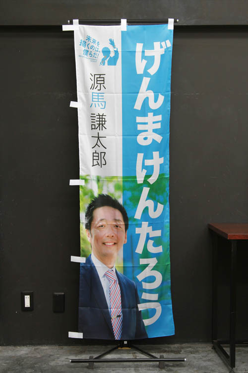 必要な情報の要点を押さえた、スタイリッシュなのぼり旗です。