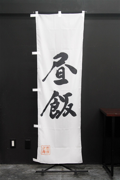 白地に墨色の手書き文字が目立つ、和風の「定食」のぼり旗です。 四角に斜め棒の「ます(=枡)」は「増す」につながり、目出度いものや 縁起物の意味があります。 ↑こちらはレギュラーサイズの商品です。 商品ページはこちら▶ 定食あります。(LUN039)