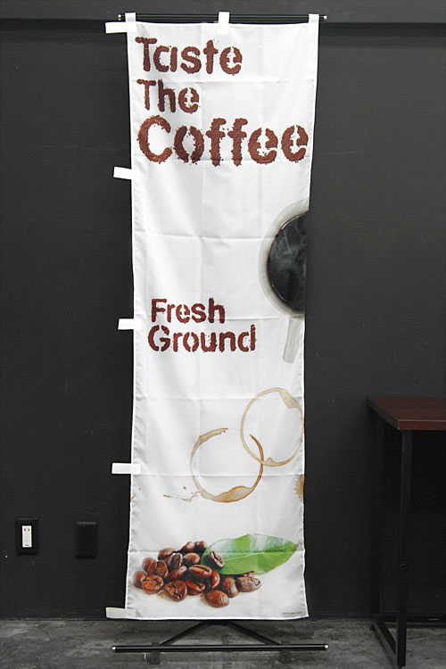 シンプルで上品なデザインが特徴のコーヒーののぼり旗。 ラフな風合いの紙地に、カップのアイコンが目をひきます。 ↑こちらはレギュラーサイズの商品です。 商品ページはこちら▶ CAFE TIME コーヒー(PAC025)