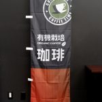 コーヒーののぼり旗。白地にポップなイラストで、すっきり仕上げました。