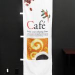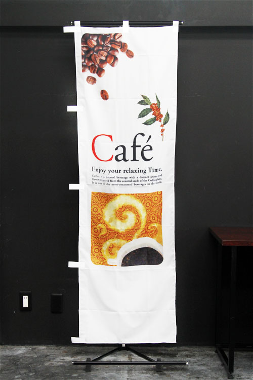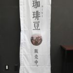 ローストした珈琲豆の写真が特徴の「自家焙煎Coffee」のぼり旗です。