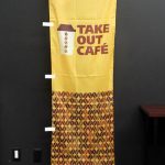 「クロワッサン カフェも併設しています」のぼり旗です。