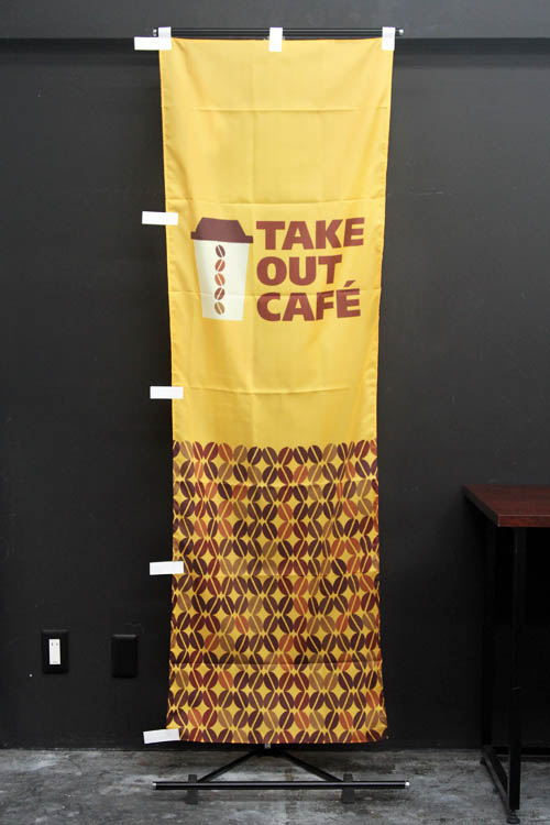 版画タッチの「クロワッサン」と「コーヒー」のイラストをあしらいました。スッキリとした「のぼり旗」をお探しの方に。