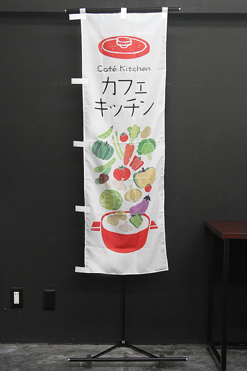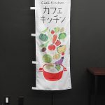 「ランチやってます」のぼり旗です。 カラフルな版画タッチのキッチン道具と野菜のイラストをあしらいました。 ↑こちらはレギュラーサイズの商品です。 商品ページはこちら▶ ランチやってます(キッチン道具・ヨコ文字大)(PAC532) ↑こちらはレギュラーサイズ、袋縫い加工の商品です。 商品ページはこちら▶ ランチやってます(キッチン道具・ヨコ文字大)(PAC532)