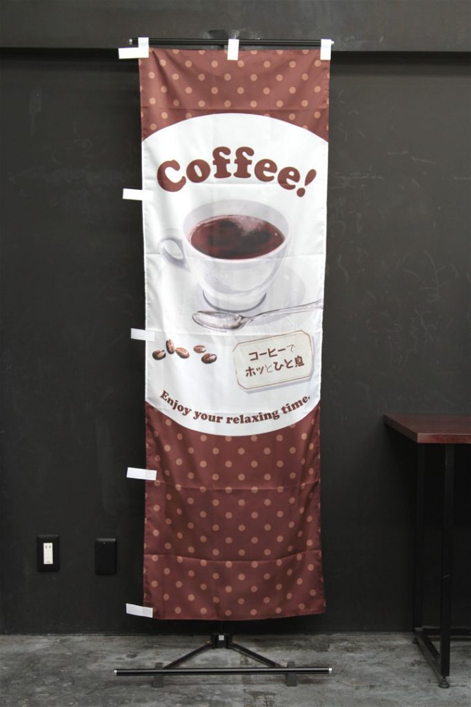 どこかゆる〜い、優しいイメージののぼり旗をデザインしました。 角丸の下地に、ほのぼのとした手描きのイラストが特徴ののぼり旗です。 文字部分はゴシック体で読みやすさを心がけました。 ↑こちらはレギュラーサイズの商品です。 商品ページはこちら▶ カフェ営業中【角丸・白茶】(PAD129)