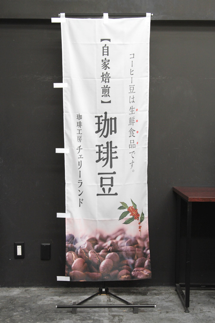 珈琲工房チェリーランドさまよりご注文いただきましたのぼり旗です。