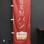 「手づくりパン」のぼり旗です。版画タッチの「食パン」のイラストをあしらいました。