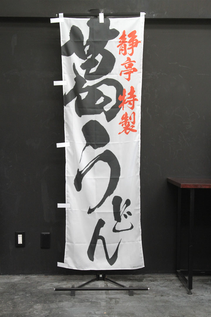 静亭さまよりご注文いただきましたのぼり旗です。 シンプルで白地が目立つのぼり旗です。 文字と版画イメージを大きく扱い、視認性バツグンです。 ↑こちらはレギュラーサイズの商品です。 商品ページはこちら▶ 手打ちうどん【和風イラスト】(SBU142)
