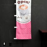 書かれている文章は「Cafe Open Mornig!」「Enjoy your relaxing time.」