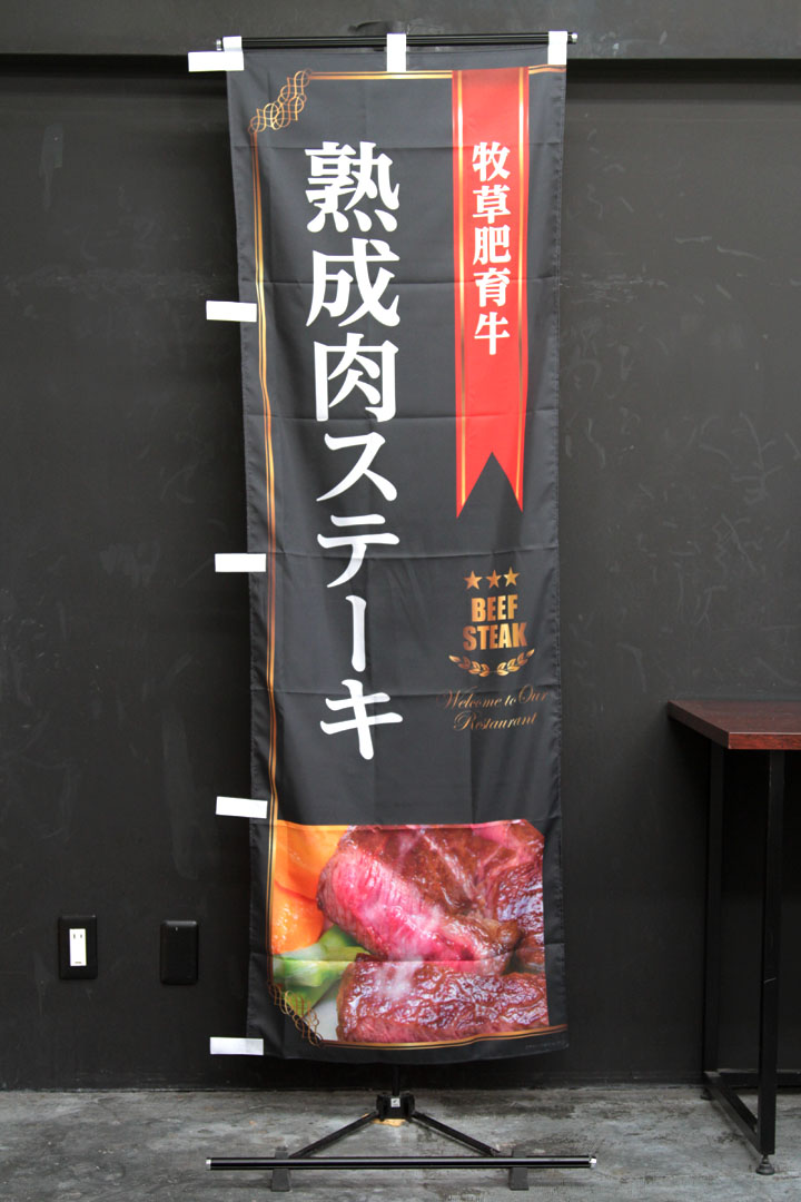 洋食シリーズ「○○○○牛熟成肉ステーキ」のぼり旗です。