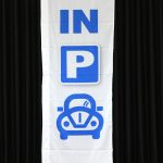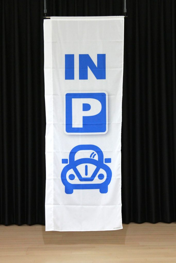 シンプルなタイプの「P in」駐車場のぼり旗です。スタンダードなデザインですので、ダイレクトに視覚に訴えます。