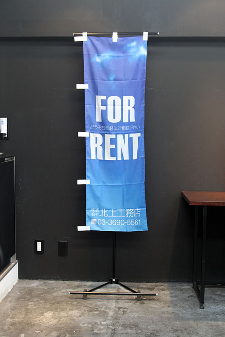 爽快な青空のイメージ写真を使用した「FOR RENT(入居者募集中)」のぼり旗です。