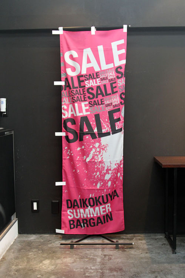 ディスカウントショップ大黒屋さまより SALEのぼり旗をご注文いただきました。 お店の名前を入れるだけで オリジナリティーのあるのぼり旗が出来上がります。 商品ページはこちら▶SALE セール(SAL024) 商品ページはこちら▶SALE セール(SAL025) ディスカウントショップ大黒屋さま▶ホームページはこちら