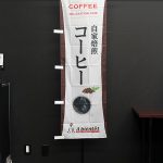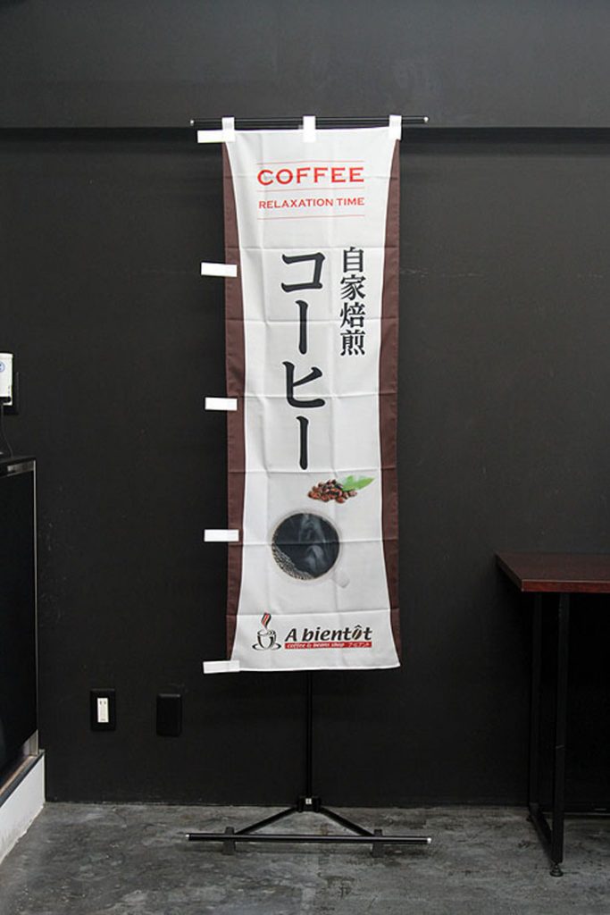 写真を大きく扱ったコーヒーのぼり旗。ご好評をいただいております。