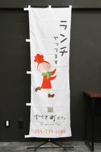 やなぎ町カフェさまにご注文いただきました。 シンプルな『ランチやってます(女子)』ののぼり旗です。 ↑こちらはレギュラーサイズの商品です。 商品ページはこちら▶ ランチやってます(女子)(YOS415)