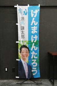 源馬謙太郎事務所様よりフルオーダーのご注文をいただきました。 大きく打ち出された文字と写真が印象的です。 寒色を基調とした、爽やかで清潔感のあるデザインです。 ↑こちらはレギュラーサイズの商品です。