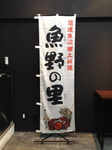 新潟県南魚沼市の土産物&食事処の、のぼり旗を制作いたしました。 シンプルに地元のものをアピールするために手書き風の文字を使いました。 そしてやっぱり白地ののぼりは目立ちます。30本も立てるそうなのできっと壮観だと思います。 データでも経験則でも分かるのですが、シンプルなメッセージを連続してアピールする見本ですね。売上アップが間違いないと確信しています。 魚野の里ホームページ