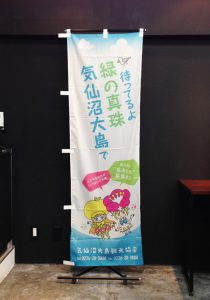 気仙沼大島観光協会さまより、フルオーダーのご注文を承りました。 以前1000本無料キャンペーンにご応募いただいたお客様です。 当初のオーダー内容から作成しましたのが、こちらのデザイン。 新たに気仙沼観光協会のキャラクターが誕生していて、 今回ののぼりのメインビジュアルになっています。 また、内容を二分割して複数枚設置するご提案をさせていただいたのがこちらのデザインです。 のぼり作成にあたり、島の情報を調べさせていただきましたが、 海のうつくしい、すてきな島のようです。 気仙沼大島観光協会HPはこちら▶ キャラクターの木春ちゃん柚花ちゃんのfacebookページはこちら▶ キャラクターの木春ちゃん柚花ちゃんの観光情報ブログはこちら▶