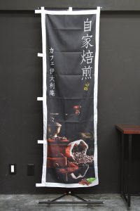 コーヒー豆の写真が特徴の「自家焙煎」のぼり旗です。 カフェ伊太利庵さまからご注文頂きました。 ↑こちらはレギュラーサイズの商品です。 元になったデザインはこちら▶自家焙煎(PAC205) 芭蕉珈琲さまからご注文頂きました。 ↑こちらはレギュラーサイズの商品です。 元になったデザインはこちら▶自家焙煎(PAC205)