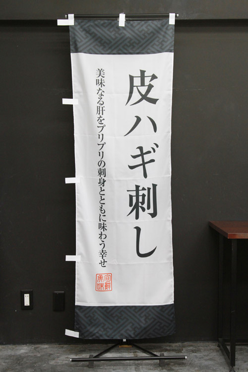 株式会社駒屋さまより文字変更のご注文をいただきました。 赤い地色に白抜き文字と波が印象的な和風のぼり旗です。 ↑こちらはレギュラーサイズの商品です。 元になったデザインはこちら▶ 青さのり(KAN067)