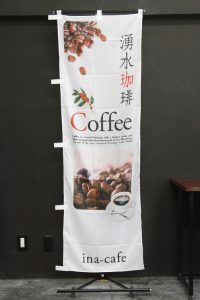 シンプルに文字とコーヒー豆の写真を組み合わせた「自家焙煎珈琲豆」のぼり旗です。 どこか懐かしい少し控えめなデザインです。 龍坊さまより文字変更・名入れのご注文をいただきました。 ↑こちらはレギュラーサイズの商品です。 商品ページはこちら▶ 自家焙煎珈琲豆販売中(白)(PAC233)