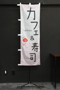 安藤茶店食堂さまよりご注文いただきました。 明るい色の鹿子(かのこ)地に、丸みのある文字でかわいく仕上げたデザインののぼり旗です。 商品ページはこちら▶ ちらし寿司(SUS080)