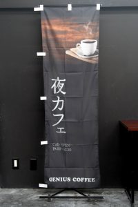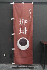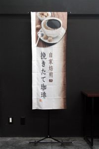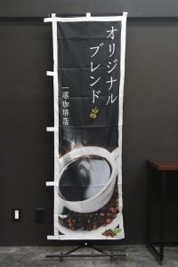 ホットコーヒーの写真が特徴の「オリジナルブレンド」のぼり旗です。