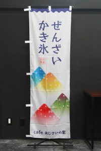 ↑こちらはUP CLOUDさまからご注文頂いた、スリムショートサイズののぼり旗です。