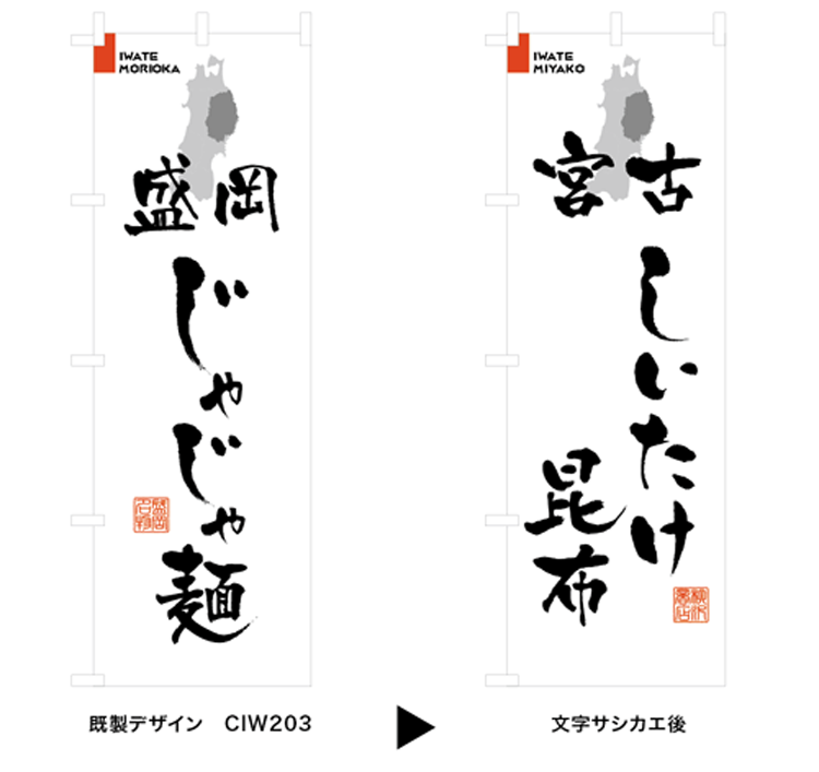 「盛岡じゃじゃ麺のぼり」を文字変更して欲しいとのご依頼でした。