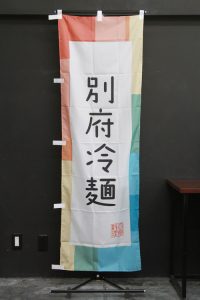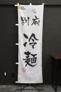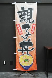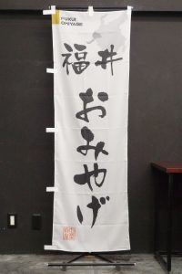 白地に「福井ソースカツ丼」の文字が目立ちます。 落款には「名物料理」の文字。