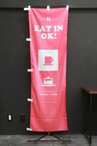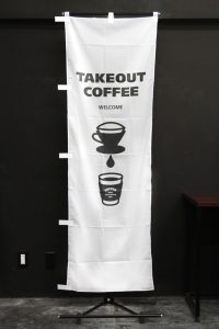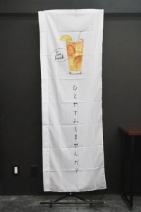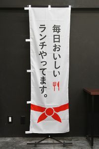 文字と写真ですがすがしいほどシンプルなのぼり旗です。