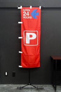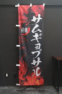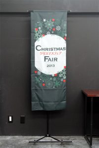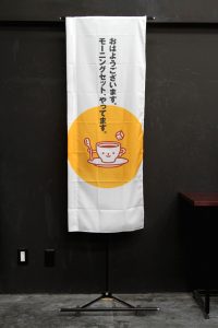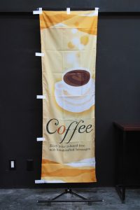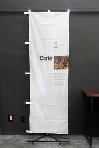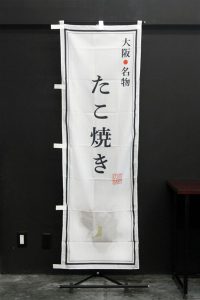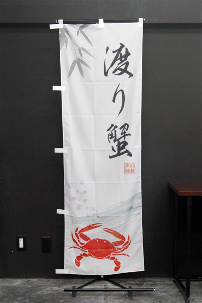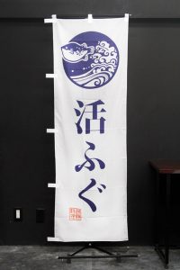 竹のシルエットをあしらった、紺地に筆文字が映える「越後へぎそば」ののぼり旗です。