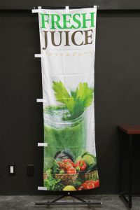竹のシルエットをあしらった、紺地に筆文字が映える「新そば」のぼり旗です。