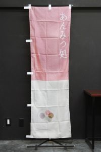 甘味「あんみつ処」のぼり旗です。 あんみつをイメージした和風テイストのイラスト入りです。 ↑こちらはレギュラーサイズの商品です。 商品ページはこちら▶あんみつ処(KAS042)