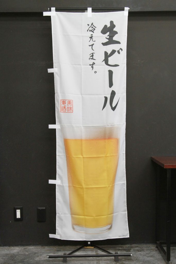 暑い日が近づくと売れ始める季節商品です。 五感に訴えたい時に写真が入っていると効果的です。 ↑こちらはレギュラーサイズの商品です。 商品ページはこちら▶ 生ビール冷えてます。(SAK027)