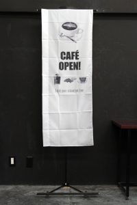 カフェ・喫茶用、モノトーンphotoシリーズ「CAFE OPEN」のぼり旗です。