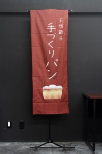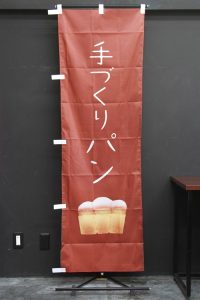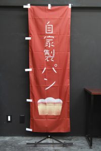「手づくりパン」のぼり旗です。版画タッチの「食パン」のイラストをあしらいました。