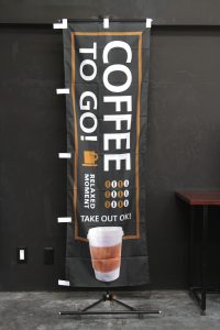 この「COFFEE TO GO!」のぼり旗はお持ち帰りのお客さまに最適な一枚です。