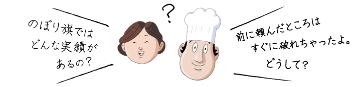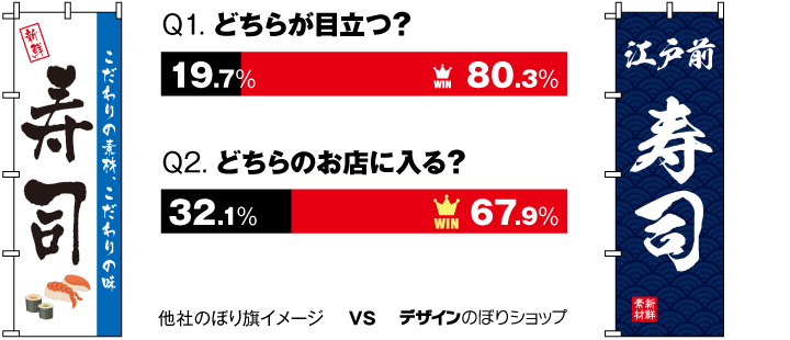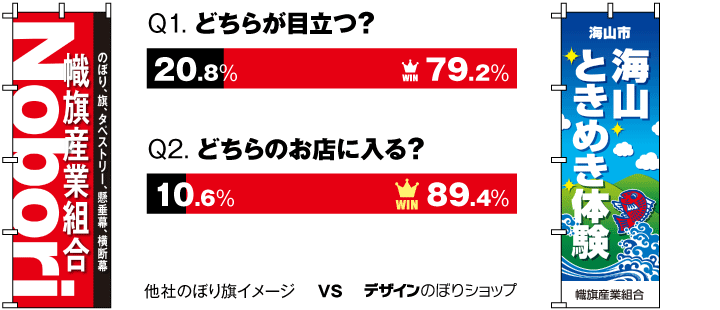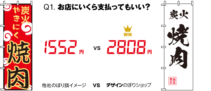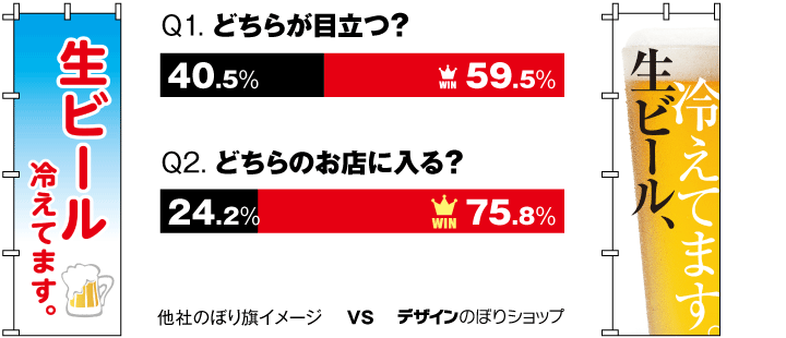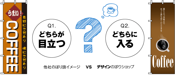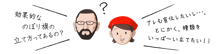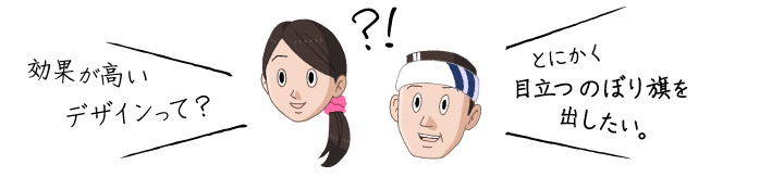 では、「集客効果が高い」のぼり旗と「効果が低い」のぼり旗。一体何が違うのでしょうか。そのヒミツはこれからお教えします。